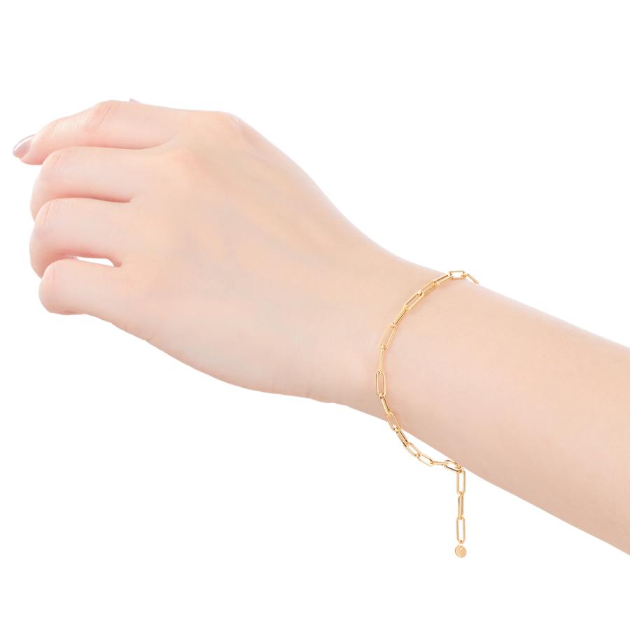 商品情報 クールな印象のゴールドチェーンブレスレット。 着けるだけでスタイルがアップデートされるおすすめアイテムです。 お手持ちのブレスレットやリングとコーディネートして、手もとのおしゃれを楽しんで。 お揃いのネックレスもあります。 地金素材:K18YG 長さ:約20cm 幅:約3mm |