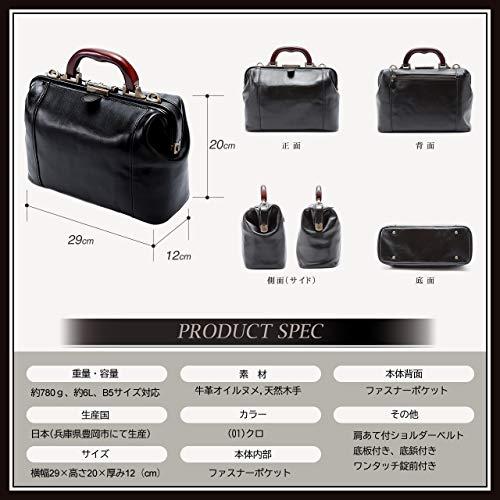 平野鞄 豊岡職人の技 国産 口枠ダレス 天然木手 牛革オイルヌメ ワンタッチ錠前 B5サイズ +オリジナル高級ムートングローブ B5サイズ ファスナーポケット