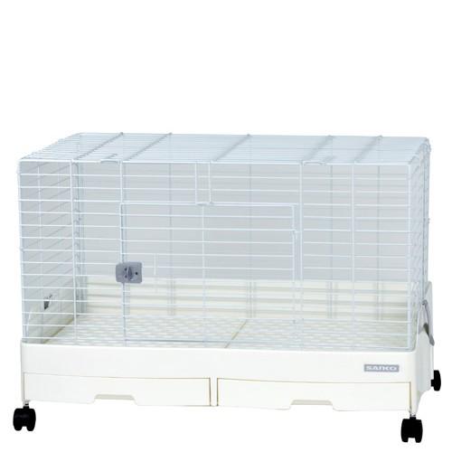商品情報 毎日のお手入れが楽々に! 進化(evolution)した、外漏れしない引き出しトレイのイージーホームの、W(ダブル)トレイのワイドタイプ!! 広々とした80cm幅ケージです。 ベースカバーの滑らかな傾斜加工が汚れを受け止め、確実にトレイへ送ります。 さらに内部の返しが2重構造になって、伝い漏れもしっかりガード!! 広い床面積でも2つのトレイ仕様で、トレイ掃除も楽々です。 毎日の簡単なお掃除は引き出し部分に集約される、お掃除上手なケージです。 【カラー】 ホワイト 【材質・成分・素材など】 スチール、ABS、PS、PP樹脂 【製品重量】 約7.9kg 【製造国】 中国 【サイズ】 組み立てサイズ:W81×D50.5×H55cm(キャスター部5cm含む) ケージ空間内サイズ:約W75.5×D42×H39(スノコ上面より)cm ワイヤーピッチ:上下約2.5cm 【その他】 組立:有 【メーカー名】 三晃商会 JANコード:4976285126208 @scaup_rabbit |